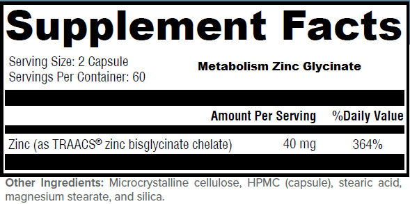 Metabolism Zinc Glycinate - Take one to two capsules daily, or as directed by your healthcare practitioner.
